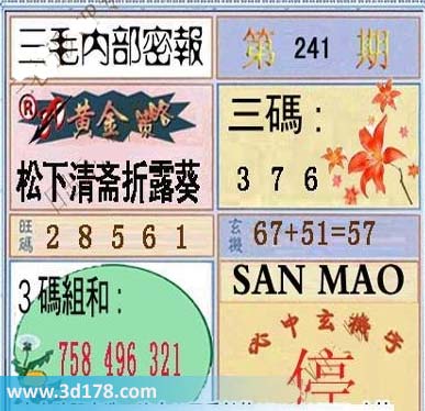 3d之家三毛图库第16241期三毛内部密报图详解: