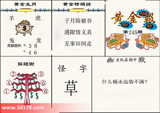 3d之家第2016245期3d黄金报详细内容如下:黄金特码诗: