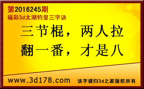 福彩3d第2016245期太湖图库解字谜详解: