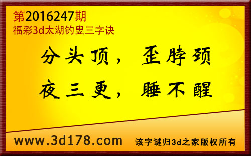 福彩3d第2016247期太湖图库解字谜详解: