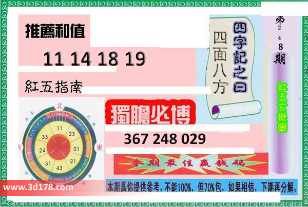 3d之家红五图库第16248期福彩3d红五图为您推荐:福彩3d第2016248期红五玄机图详细内容:推荐和值:11 14 18 19独胆必博:367 248 029四字记之曰:四面八方该红五图库由3d之家3d图库频道原创,仅供彩民参考,温馨提供。