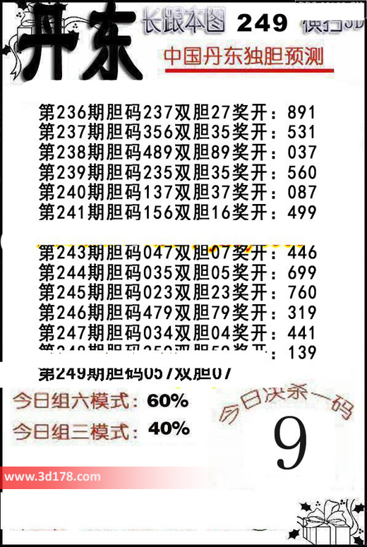 福彩3d第2016249期丹东解析: