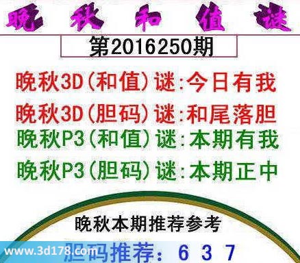 晚秋p3(和值)谜:本期有我