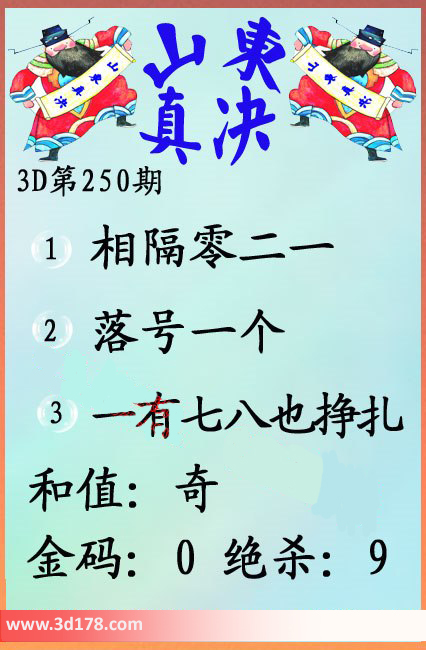 3d第2016250期山东真诀图金码推荐:1、相隔零二一