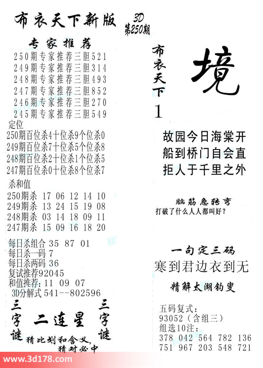 本期3d之家布衣图库3d布衣天下新版详解:定位杀号推荐: