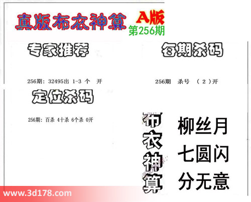 3d之家布衣图库之布衣神算图第2016256期详解:
