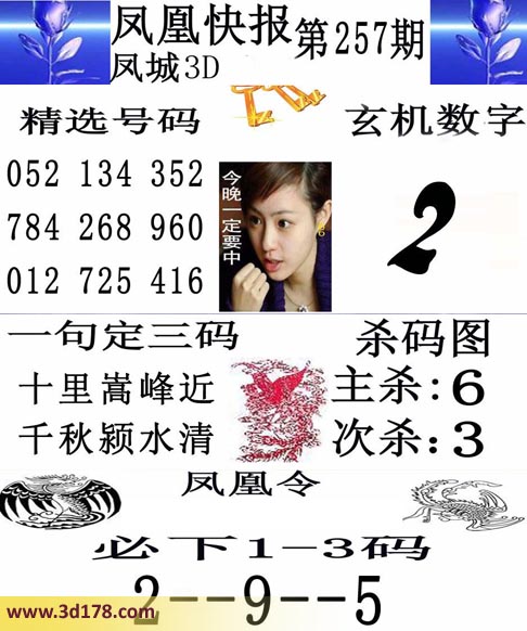 福彩3d凤凰快报图第16257期精选号码推荐:
