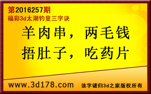 福彩3d第2016257期太湖图库解字谜详解: