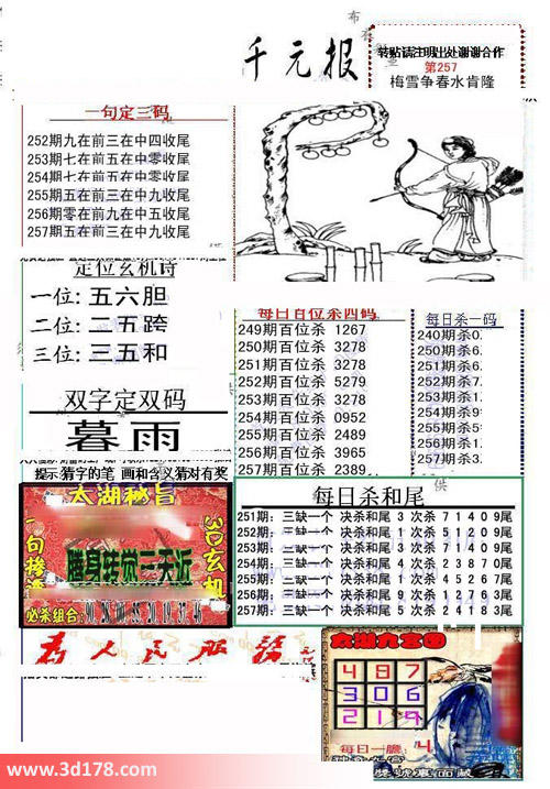 福彩3d第2016257期布衣千元报图详情分析如下: