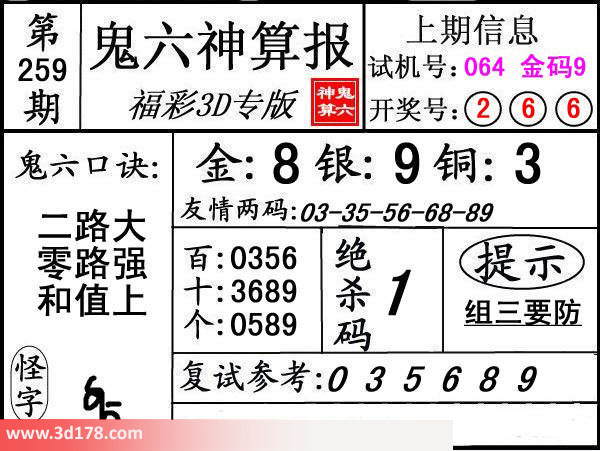 3d第16259期鬼六神算报为您推荐鬼六口诀: