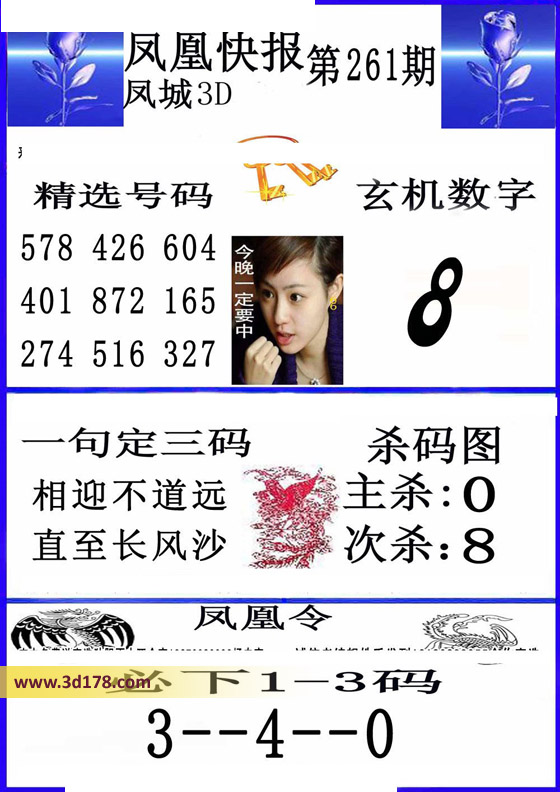 福彩3d凤凰快报图第16261期精选号码推荐: