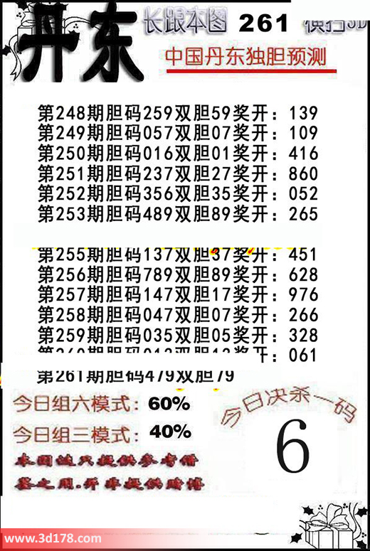 福彩3d第2016261期丹东解析: