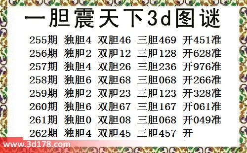 本期一胆震天下3d图谜