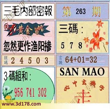 3d之家三毛图库第16263期三毛内部密报图详解: