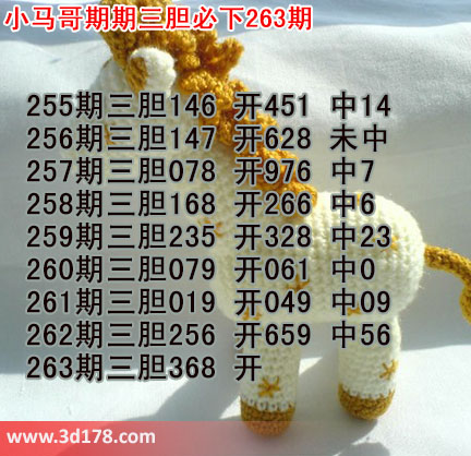 3d第263期小马哥三胆预测如下: