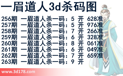 该一眉道人3d杀码图由3d之家3d图库频道原创,仅供彩民参考,温馨提供。