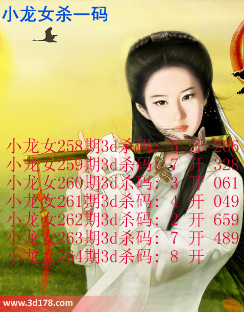 小龙女264期3d杀码: 8 开该小龙女杀码图由3d之家3d图库频道原创,仅供彩民参考,温馨提供。