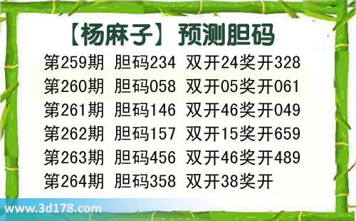 第264期 胆码358 双开38奖开杨麻子图库由3d之家3d图库频道原创,仅供彩民参考,温馨提供。