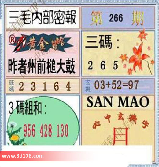 3d之家三毛图库第16266期三毛内部密报图详解: