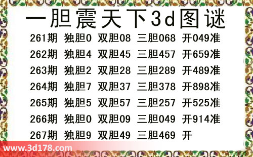 一胆震天下三胆图库由3d之家3d图库频道原创,仅供彩民参考,温馨提供。