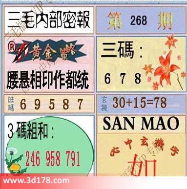 3d之家三毛图库第16268期三毛内部密报图详解: