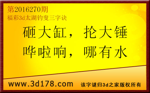 第16270太湖字谜解太湖钓叟三字诀:福彩3d第2016270太湖图库解析: