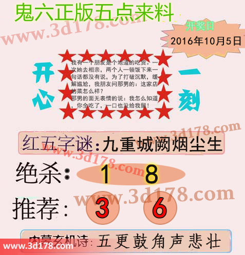 3d鬼六图库第16272期鬼六正版五点来料图:字谜:九重城阙烟尘生