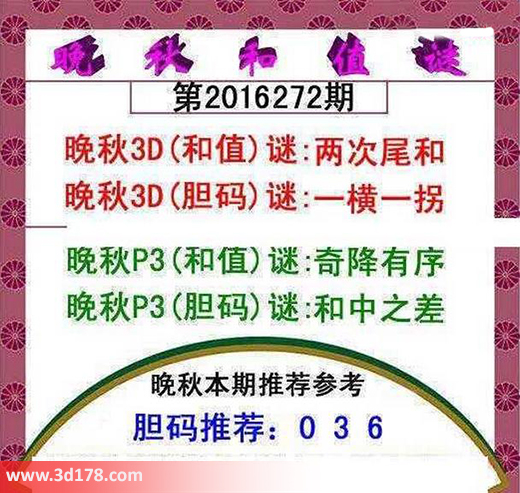 胆码推荐:036红五图库由3d之家3d图库频道原创,仅供彩民参考,温馨提供。