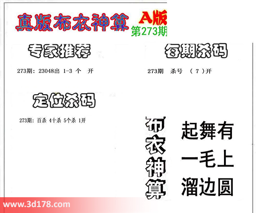 3d之家布衣图库之布衣神算图第2016273期详解:专家推荐: