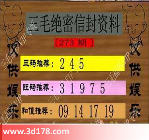 福彩3d第273期三毛绝密信封资料图详解:三码推荐:245
