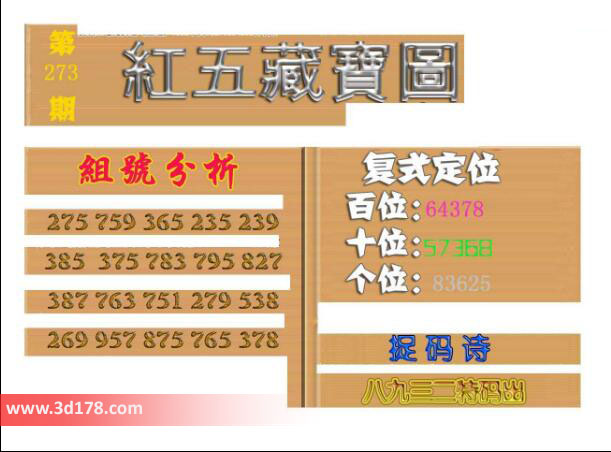 3d之家3d红五藏宝图第2016273期为您推荐复式定位、捉码诗以及组号分析: