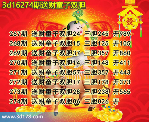 胆码图库3d第2016274期送财童子图: