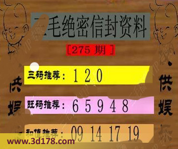 福彩3d第275期三毛绝密信封资料图详解:三码推荐:120