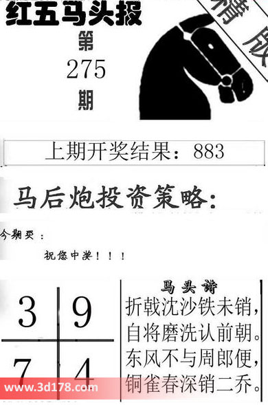 3d第2016275期红五马头报本期马头诗详解: