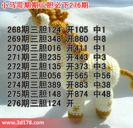 3d第276期小马哥三胆预测如下:
