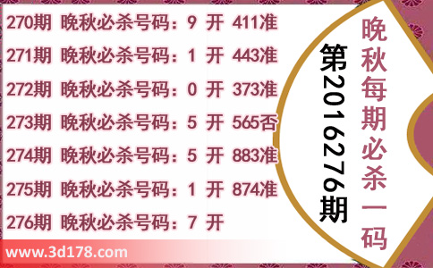271期 晚秋必杀号码:1 开 443准