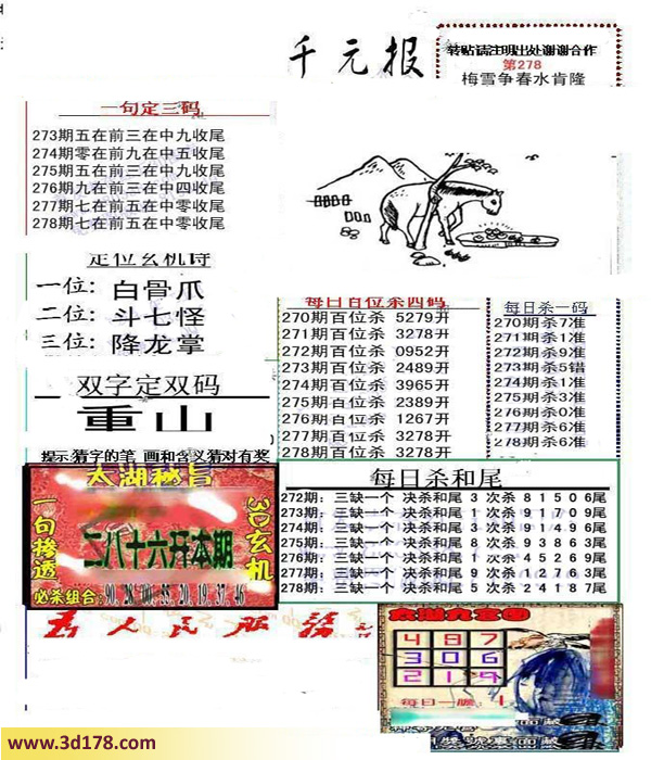 福彩3d第2016278期布衣千元报图详情分析如下: