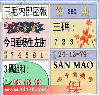 3d之家三毛图库第16280期三毛内部密报图详解: