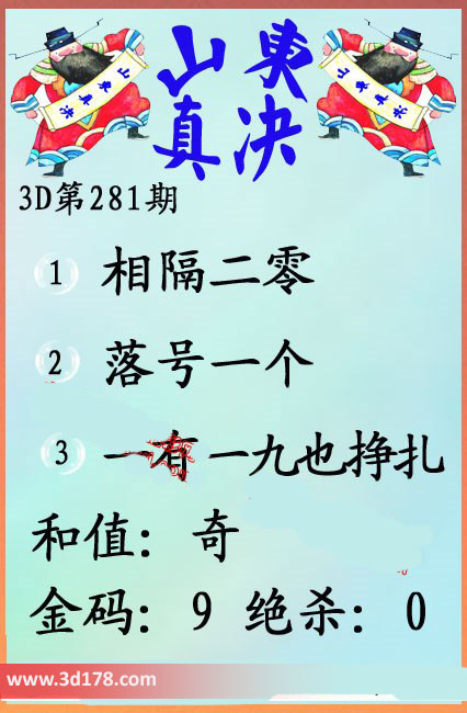 福彩3d第16281期山东真诀图如下所示: