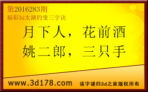 福彩3d第2016283期太湖图库解字谜详解: