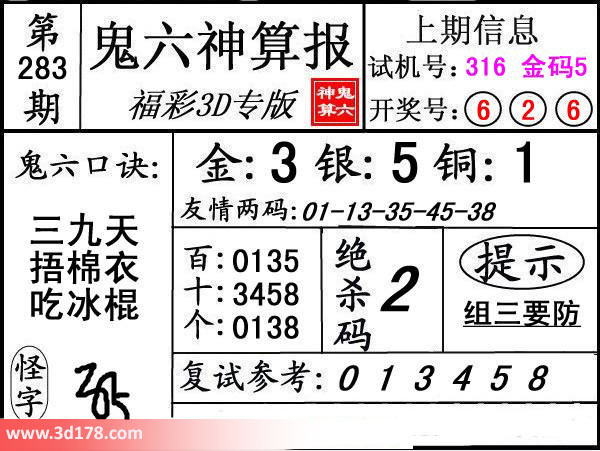 3d第16283期鬼六神算报为您推荐鬼六口诀: