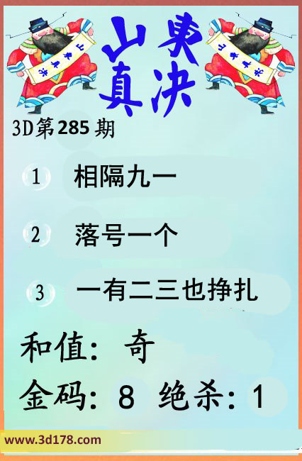 福彩3d第16285期山东真诀图如下所示: