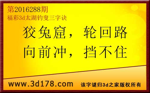 福彩3d第2016288太湖图库解析: