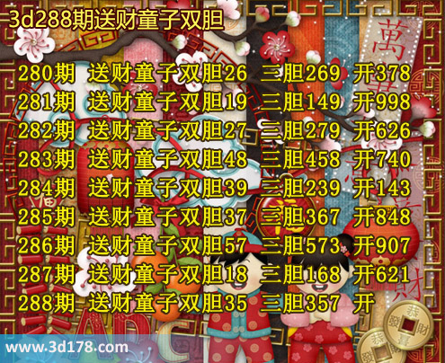 280期 送财童子双胆26 三胆269 开378