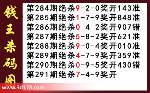 近期3d钱王杀码具体详情: