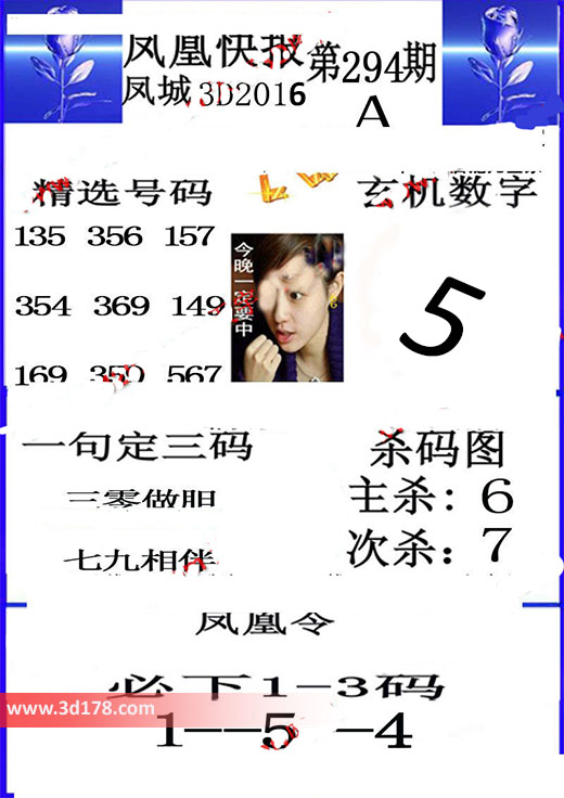 福彩3d凤凰快报图第16294期精选号码推荐: