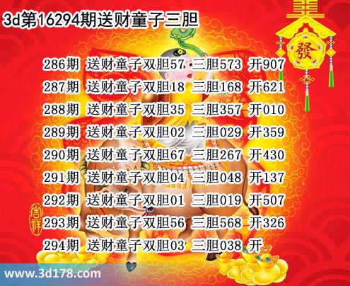 294期 送财童子双胆03 三胆038 开