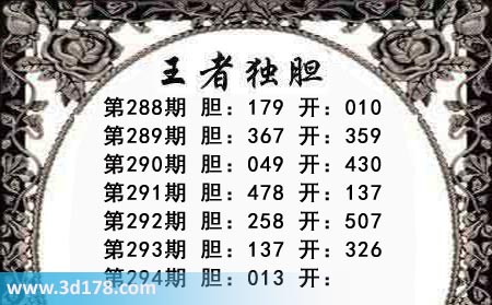 3d之家第294期王者独胆图推荐胆码: