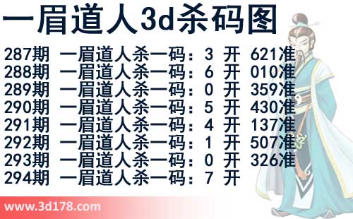 该一眉道人3d杀码图由3d之家3d图库频道原创,仅供彩民参考,温馨提供。