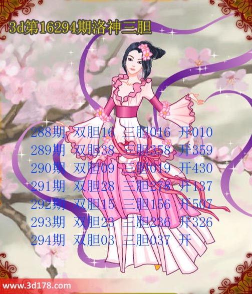 福彩第2016294期3d洛神三胆图强力推荐: